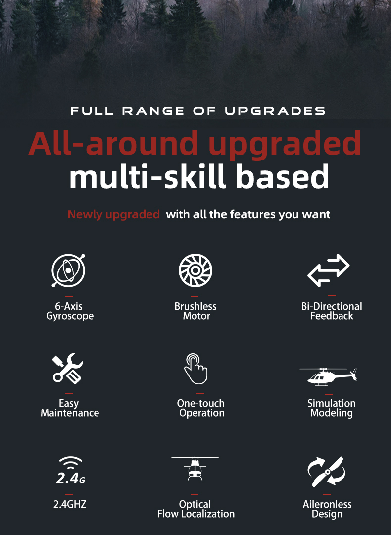 - High Realism: 1:27 scale model of the Bell206 with detailed design and lighting.